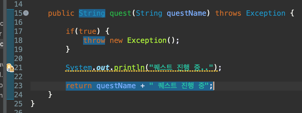 throw new Exception("Quest 처리 중 예외 발생");