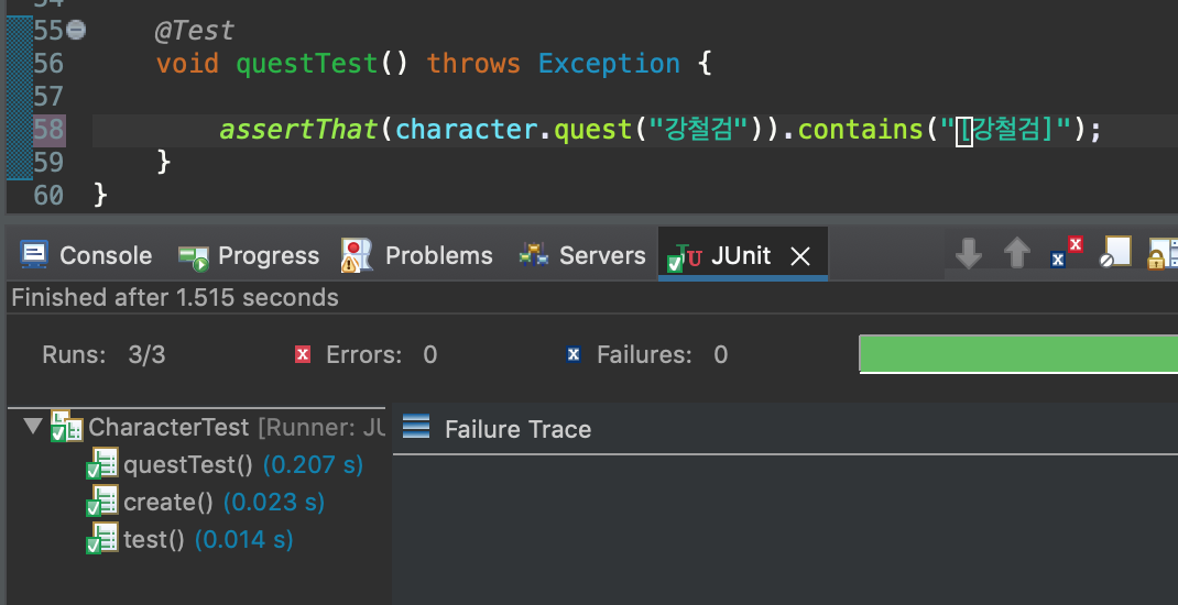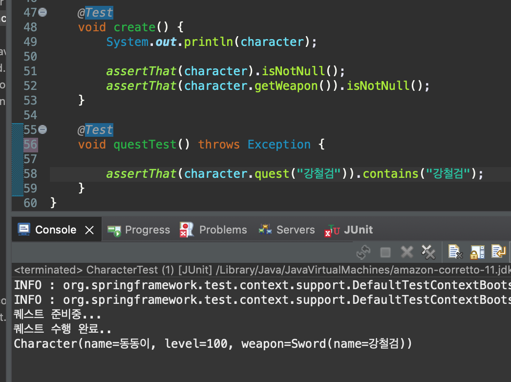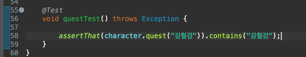 assertThat(character.quest("강철검")).contains("[강철검]");