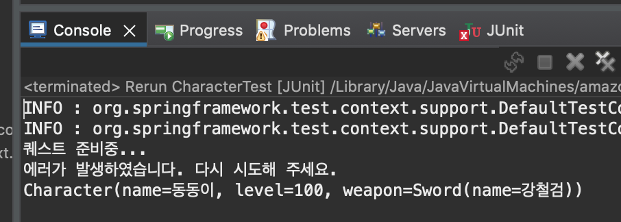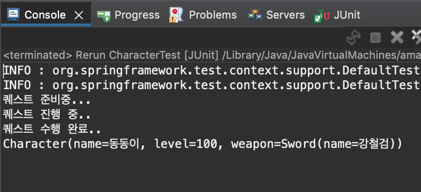 System.out.println(" 퀘스트 수행 완료..");
