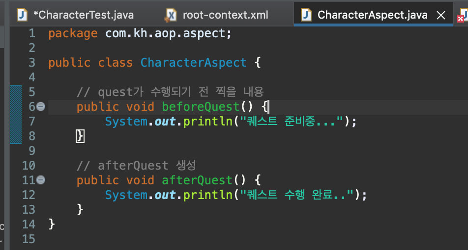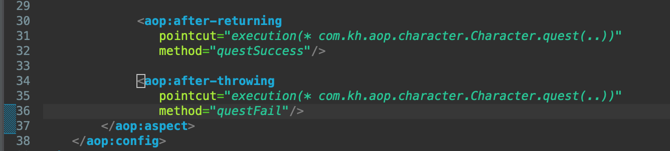 <bean id="characterAspect" class="com.kh.aop.aspect.CharacterAspect"/>
