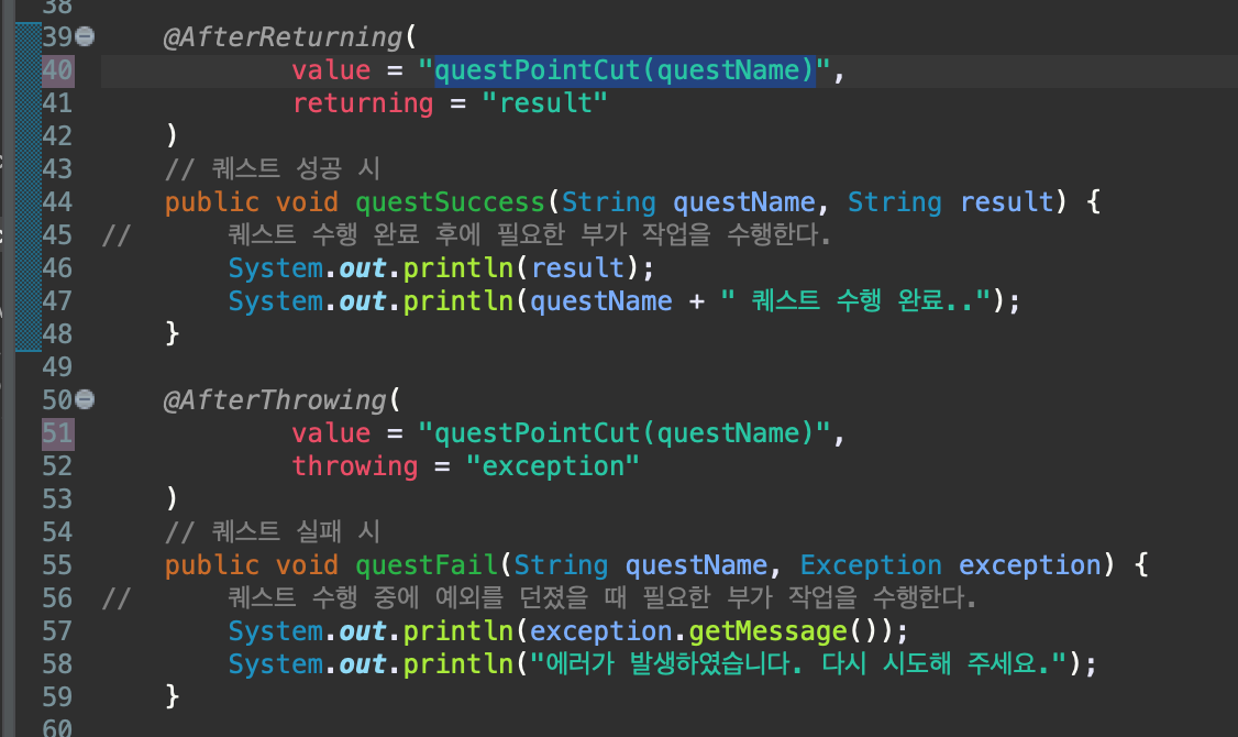// value = "questPointCut(questName)",