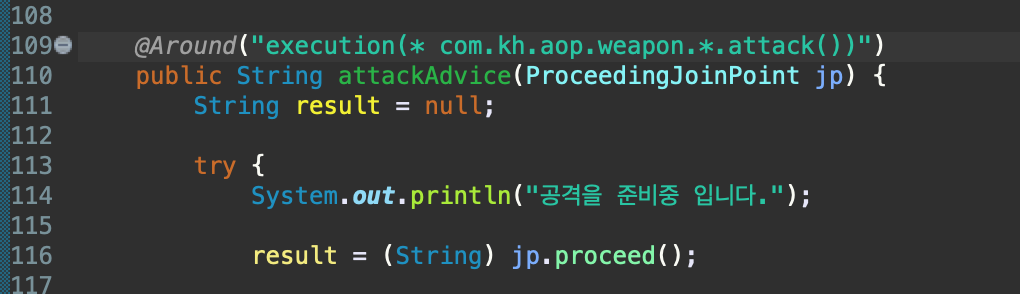 @Around("execution(* com.kh.aop.weapon.*.attack())")