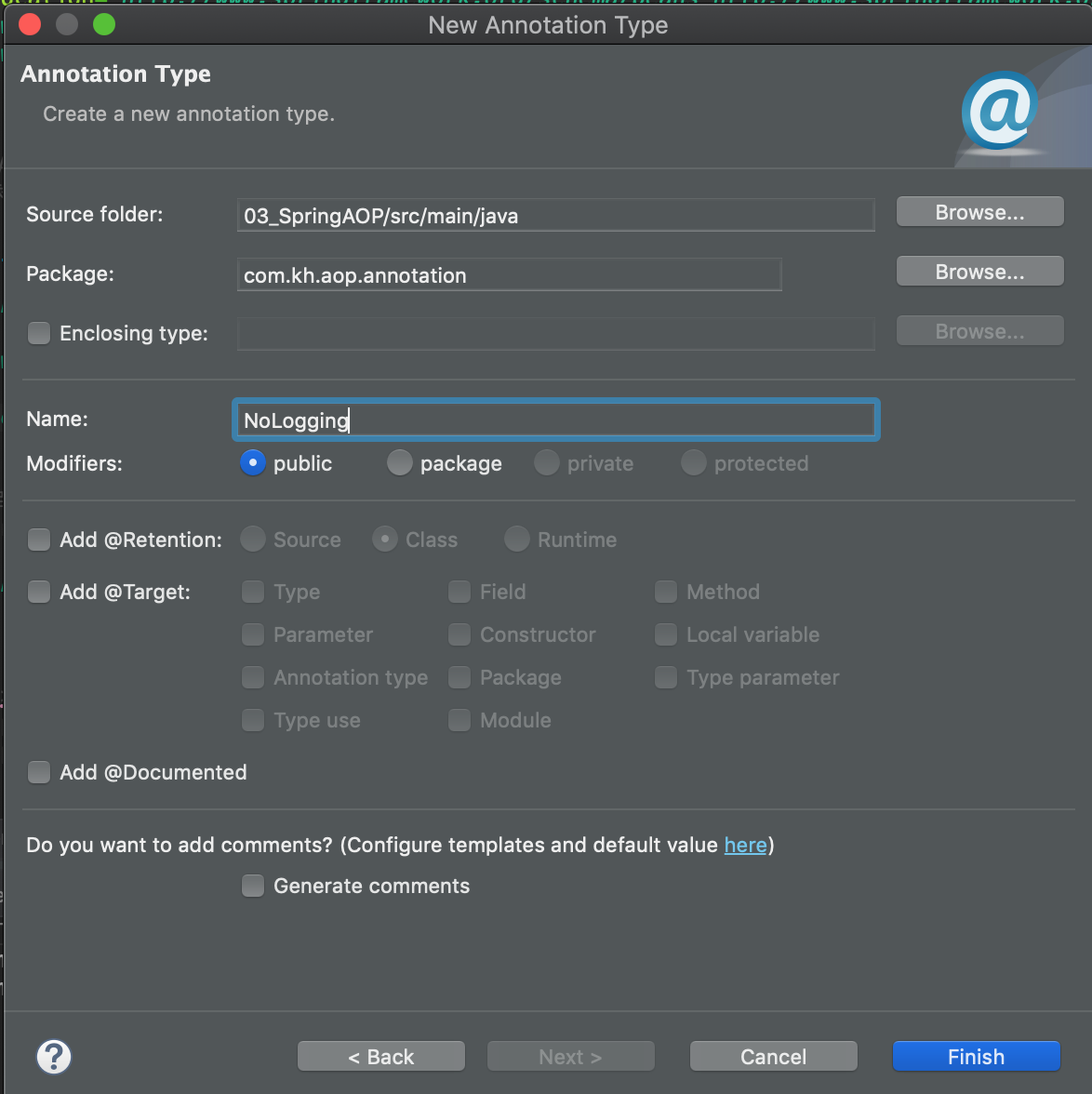 그리고 OwnerAspect.java에서 NoLogging annotation이 포함 안 된 advice를 실행시키는 Around 어노테이션 작성
