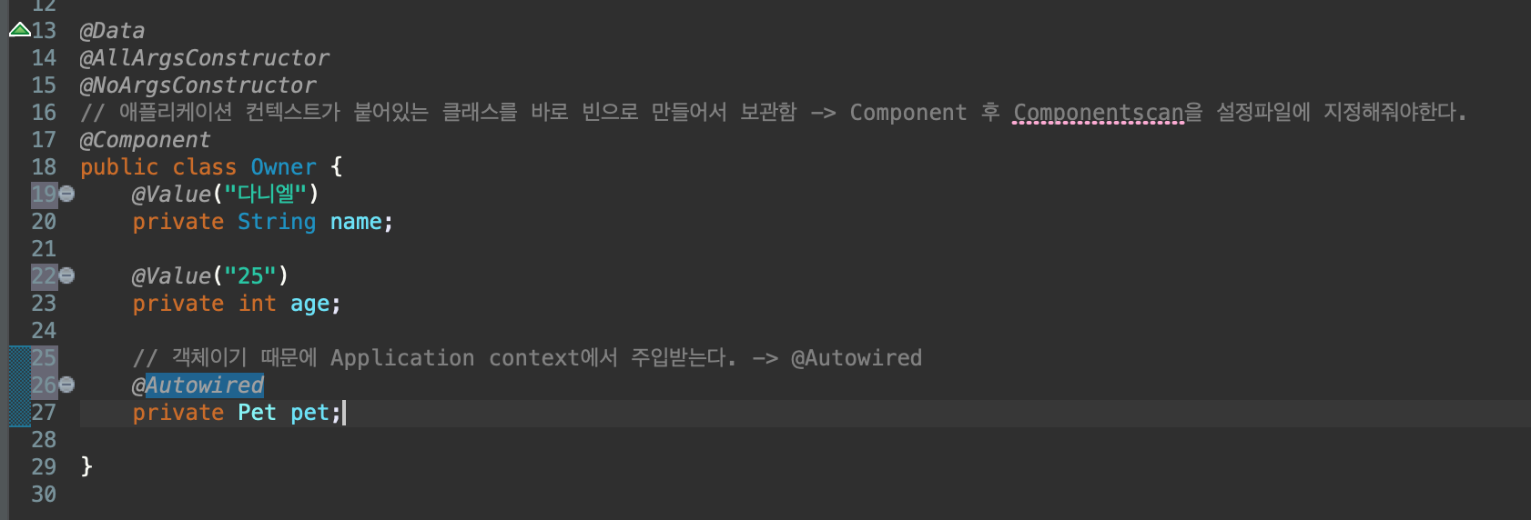 // 애플리케이션 컨텍스트가 붙어있는 클래스를 바로 빈으로 만들어서 보관함 -> Component 후 Componentscan을 설정파일에 지정해줘야한다.