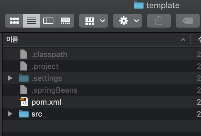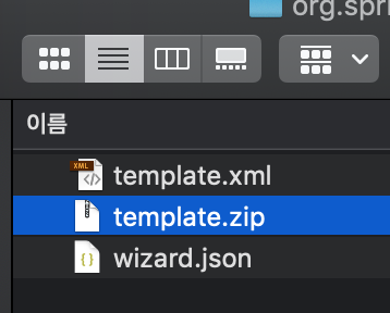 아무 프로젝트의 properties -> Resource -> Location -> .metadata(숨김폴더) -> sts -> contents -> template.zip파일을 가지고 프로젝트의 기본 틀로 사용한다.