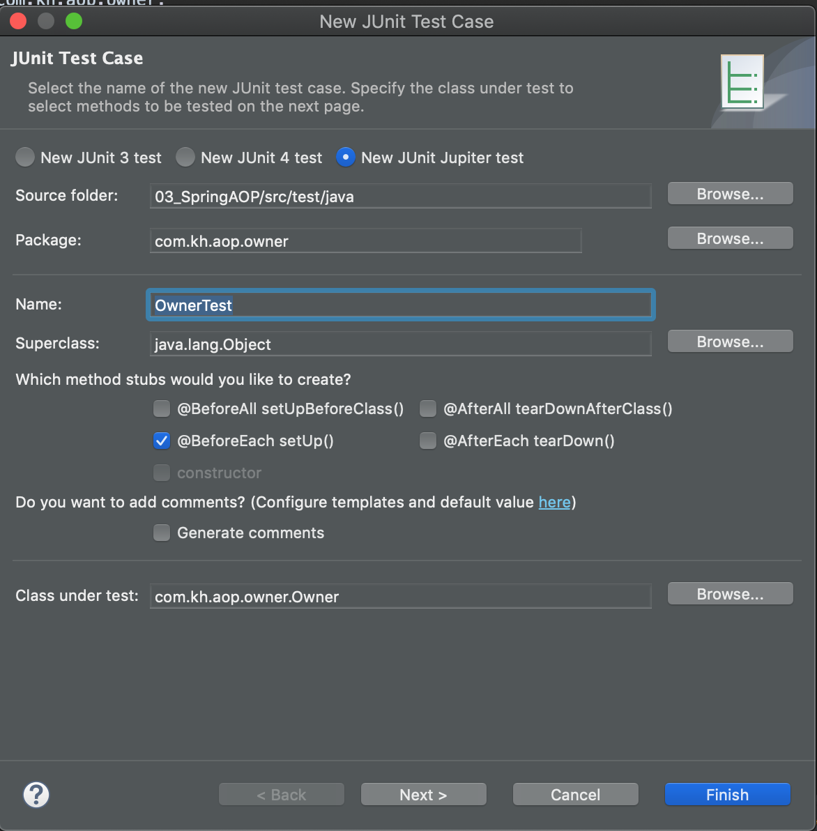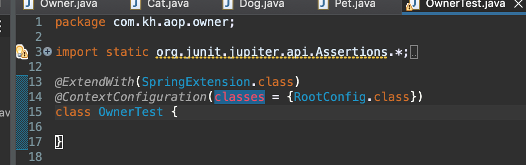 이전 SpringDI에서 작업했던 owner, pet 폴더를 aop 폴더 밑에 복사해준다. -> 패키지명 변경됐으니 수정도 해준다.