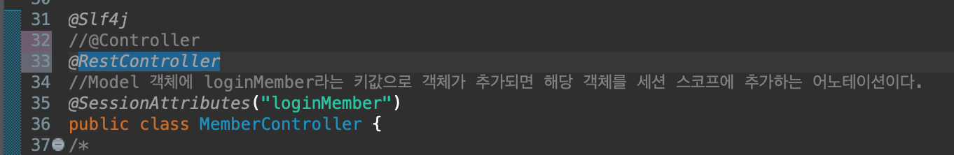 - Model 객체에 "키값"에 해당하는 Attribute를 Session Scope까지 범위를 확장시킨다.