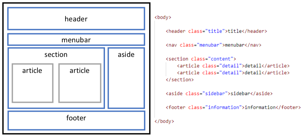 -> 페이지 구조를 특정 기능에 맞는 태그를 사용하여 구분,